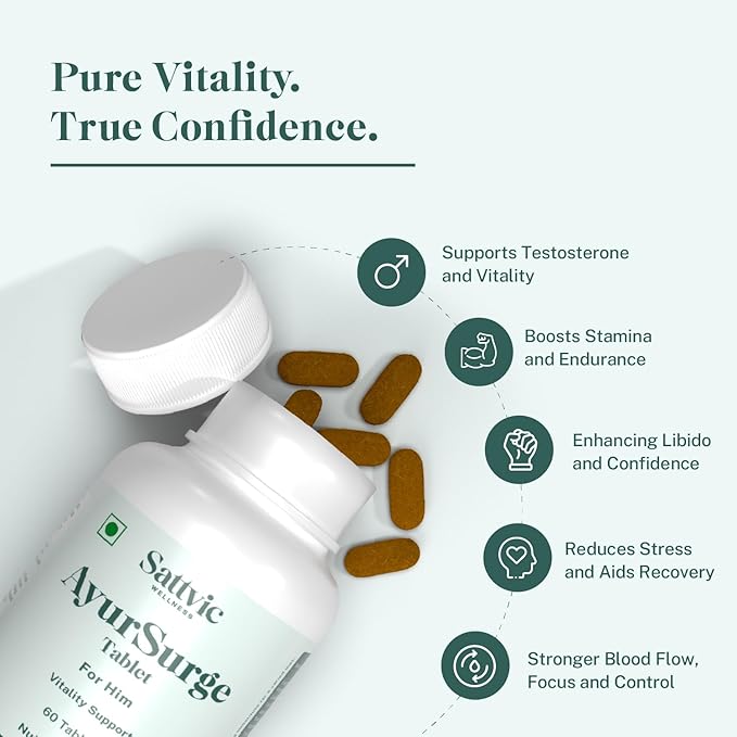 AyurSurge Men’s Vitality Tablets | 11 Herbal Actives | 1.28g Each