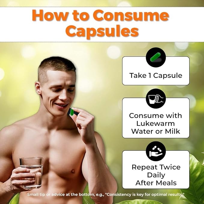 - HOW TO USE: Take 1 capsule twice a day after lunch or dinner with water or milk. For visible results, consume these capsules regularly for 2-3 months.