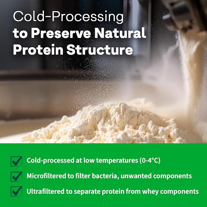 - Cold-Processed & Ultra-Filtered for Maximum Absorption: Extracted without heat to preserve protein bioactivity, and processed using advanced ultrafiltration to retain essential proteins while removing excess lactose and impurities—ensuring superior purity, digestibility, and fast absorption.